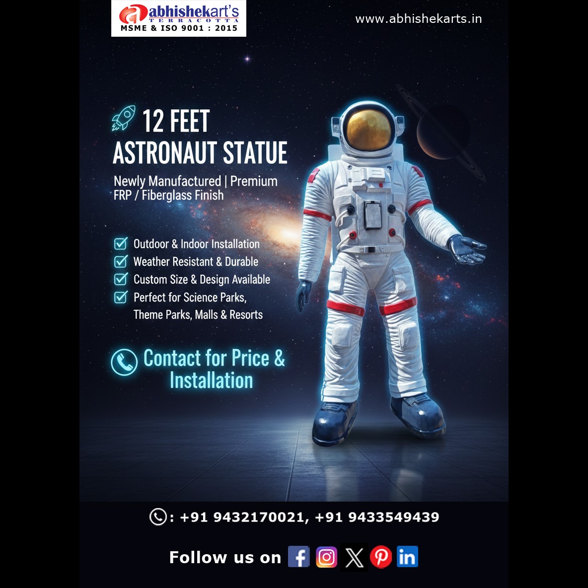 Abhishek Arts is one of the leading astronaut statue manufacturers in India, specializing in high-quality Fiberglass Astronaut Statue and FRP Astronaut Statue manufacturing for theme parks, science parks, malls, exhibitions, resorts, selfie points, museums, educational institutions and public attraction zones. Our premium FRP Astronaut Statue models are made using high-grade Fiber Reinforced Plastic (FRP), ensuring excellent strength, weather resistance and long-lasting durability. Each Fiberglass Astronaut Statue is crafted by skilled artists with realistic detailing, smooth finishing and premium painting that gives a futuristic and eye-catching look. These statues are ideal for both indoor and outdoor installations, making them a perfect attraction for visitors and photo zones. Why Choose Abhishek Arts for FRP Astronaut Statue? As trusted astronaut statue manufacturers in India, we focus on quality, design and long-term performance. Our astronaut statues are widely used for modern décor and public installations due to their durability and premium appearance. Key Features of Our Fiberglass Astronaut Statue & FRP Astronaut Statue: Premium quality FRP / Fiberglass material Strong internal structure for outdoor use Weather-resistant & long-lasting paint finish Realistic astronaut design with fine detailing Customization available in size, colour, pose & theme Suitable for theme parks, science parks & commercial spaces Safe packing, delivery and installation support Whether you need a life-size astronaut model or a giant astronaut statue for large theme projects, Abhishek Arts delivers customised FRP Astronaut Statue solutions as per your requirements. If you are searching for reliable Fiberglass Astronaut Statue suppliers, manufacturers and exporters, we are your one-stop destination. 📞 Contact Abhishek Arts today for the best quality FRP Astronaut Statue manufacturing in India. #AstronautStatueManufacturersInIndia #FiberglassAstronautStatue #FRPAstronautStatue #FRPStatueManufacturer #FiberglassStatue #ThemeParkStatue #ScienceParkAttraction #SelfiePointModel #OutdoorDecorStatue #FRPModels