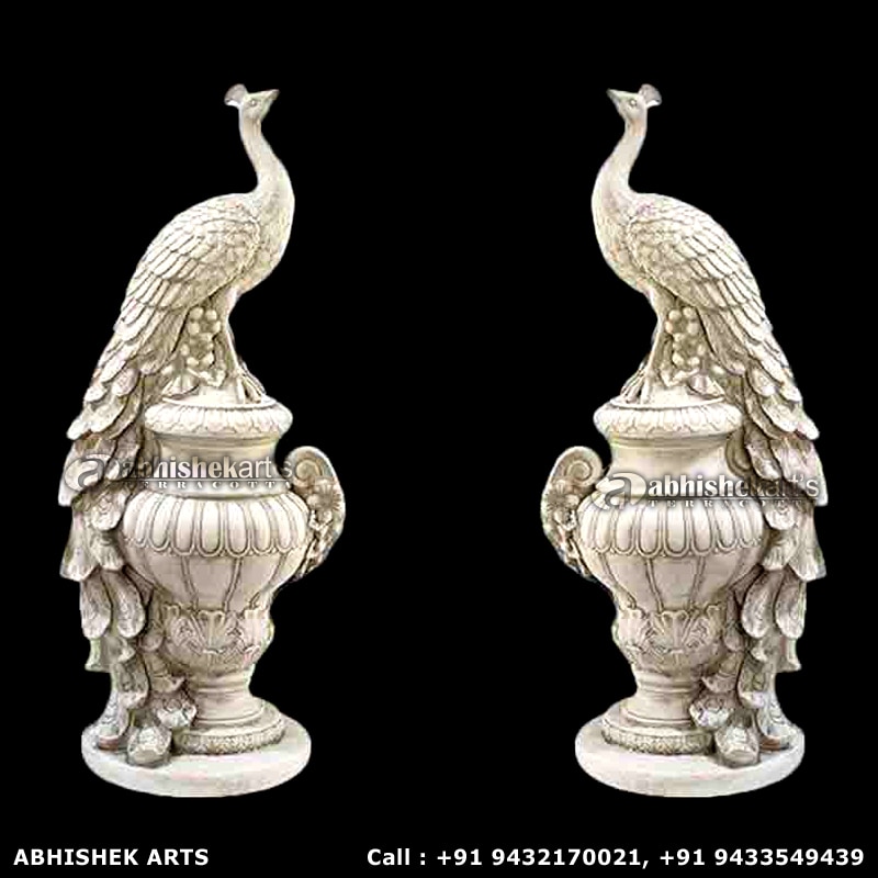 We are one of the leading manufacturer and supplier of Fiber Peacock Garden Decoration Sculpture. These fiber statues are made of high grade FRP with weather coated color for long lasting. Height of this Peacock statue is available in 6 feet. We also do customized statues.